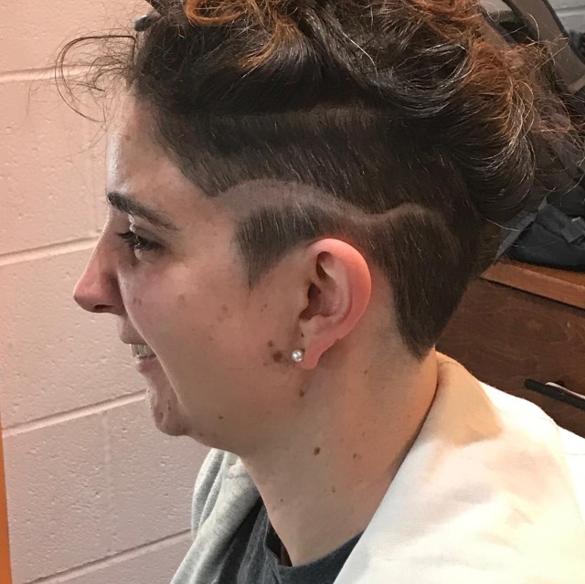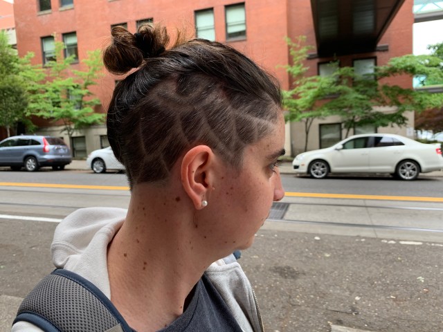 SO- I did. I had been looking for short hair inspiration pictures on Pinterest. A disappointing finding is that if you search “post craniotomy haircut” on Pinterest, mostly what comes up is wig websites. 🙄 But I did find some good pictures of short punk hair, “hair tattoos,” or shaved patterns, and I went for it!