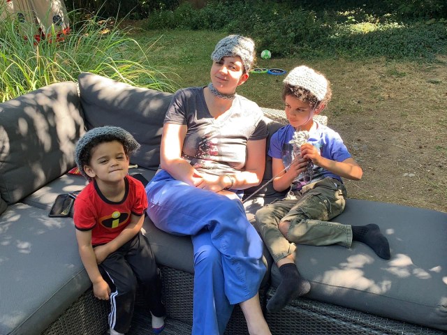 So, about a week ago I went to the beginner knitting group, and I’m hooked! I have learned how to cast on, the knit stitch, purl stitch, to do a cable, and to cast off. Look at the hats I made for the boys and I 😉